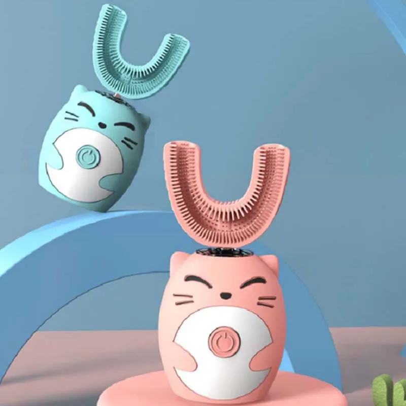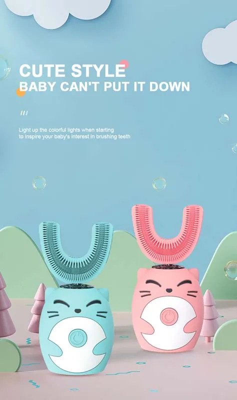 Children'S Waterproof U-Shaped Acoustic Electric Silicone Toothbrush 360 Degree Intelligent Toothbrush For Cleaning Teeth1. Cute cartoon design, babies love to brush their teethBrushing teeth quickly in 2.60 seconds, with a cleanliness of up to 99%3.