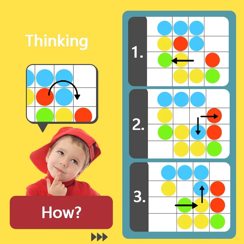 3.اتبع النموذج الموجود على البطاقة واستخدم إصبعك لتحريك الكرة الدوارة في الصندوق